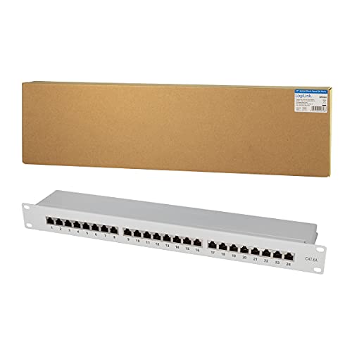 Patch panel cat. 6a STP 24 porte · CAT.6A classe EA 10G 500 MHz collegamento permanente · Conforme a ISO/IEC 11801 e TIA/EIA 568 · 24 porte RJ45 schermate, un'unità di altezza · Alloggiamento in metallo schermato per montaggio da 19 · Per cavi di installazione da AWG22 a AWG24 · Colore grigio (RAL 7035) · Materiale di montaggio incluso · Supporta PoE, PoE+ e PoE++