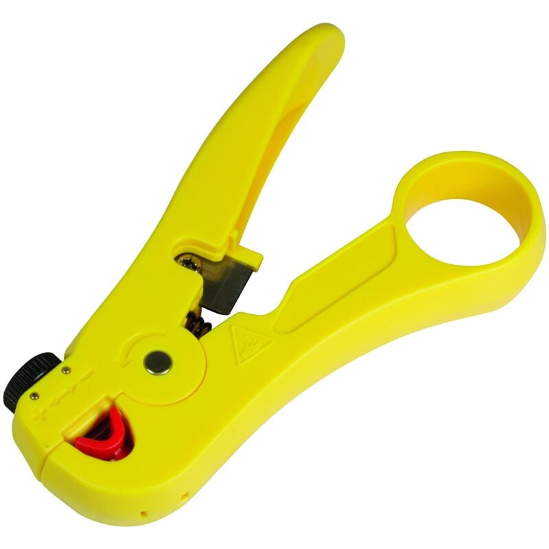 Questa pinza spelafili professionale è appositamente progettato per la rete e cavo dati con un diametro di 3, 5 - 9 mm. Lo strumento può essere molto facilmente regolare il bisogno di diametro del cavo tramite manopola. La stabile e comoda pinza è inoltre dotato di una guaina preciso lama per tagliare o rimuovere.