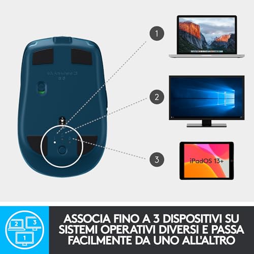 Mouse Wireless Abilitato Flow: Naviga in più dispositivi con il mouse Logitech Flow e passa da uno all'altro con lo spostamento del cursore;