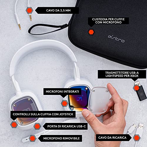 Logitech G Astro A30 LIGHTSPEED Cuffie Gaming Wireless, Bluetooth, Dolby Atmos, Braccio Rimovibile, Batteria da 27 ore, USBC, per PS5, PS4, Xbox, Nintendo Switch, PC, Android - Bianco