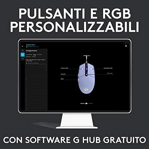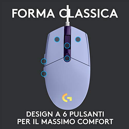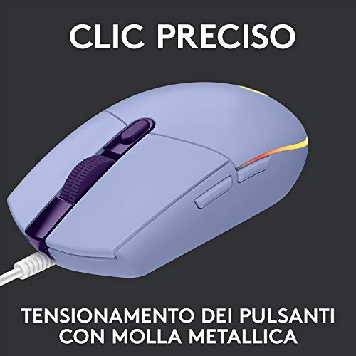 Logitech G203 LIGHTSYNC Mouse Gaming con Illuminazione RGB, Personalizzabile, 6 Pulsanti Programmabili, Sensore per Gaming, Tracciamento a 8.000 DPI, Peso Ridotto - Lilla