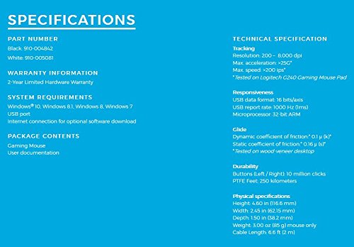 Sensori all'Avanguardia: grazie al sensore ottico da 6000 DPI, preciso e veloce, puoi mirare al cursore del mouse da gioco Logitech G in base alle sensazioni, non solo alla vista