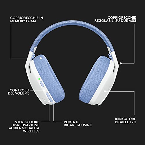 Comfort Totale: la cuffia gaming wireless G435 è indossabile da molti, ma è progettata per i gamer più giovani con cuscinetti auricolari in memory foam e dimensioni adatte per le teste più piccole