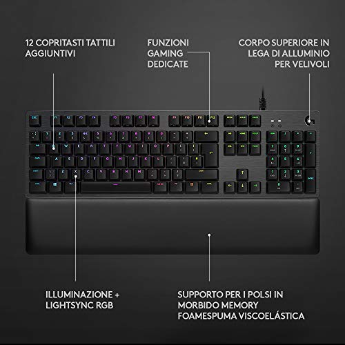 Logitech G G513 Lightsync RGB Tastiera Gaming Meccanica con Switch GX Brown, Supporto per i Polsi in Memory Foam Passthrough USB (Layout Tedesco), Carbon