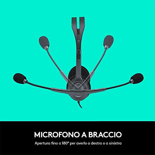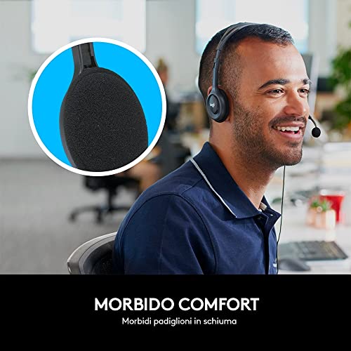 Logitech H111 Cuffie Cablate per Computer, Stereo con Microfono, Cancellazione Rumore, Jack Audio da 3.5 mm, PC/Mac/Laptop/Smartphone/Tablet, Nero