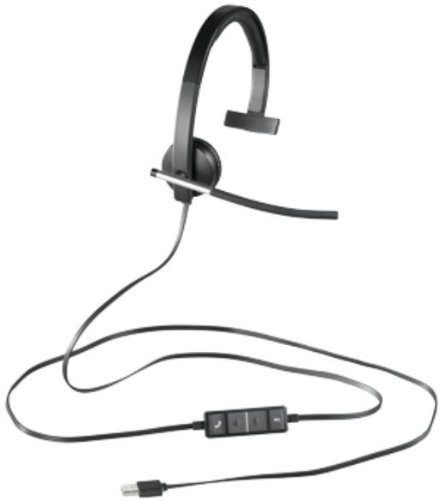 Logitech H650e Cuffie Cablate, Mono Con Microfono a Cancellazione di Rumore, USB, Controlli in Linea, Indicatore LED, Compatibili con PC/Mac/Laptop, Nero