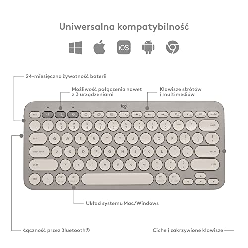 Logitech K380 Tastiera wireless Bluetooth Multi-Device con Easy-Switch, design sottile e durata della batteria di 2 anni. PC, laptop, Mac, Android, iPad OS, Apple TV, US International QWERTY - Sabbia