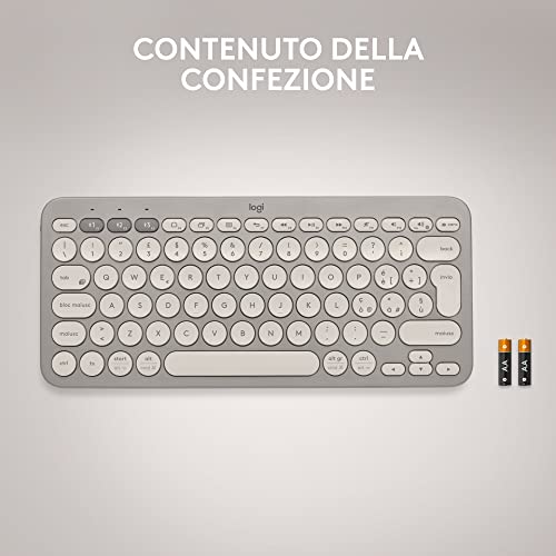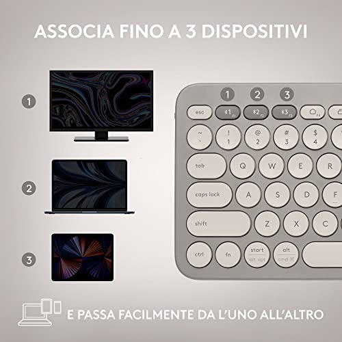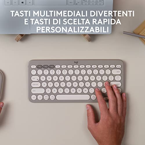 Logitech K380 Tastiera Wireless Bluetooth Multidispositivo, Fino 3 Dispositivi, Compatta,Batteria di 2 Anni - PC, Laptop, Windows, Mac, Chrome OS, Android, iPadOS, Apple TV - Sabbia