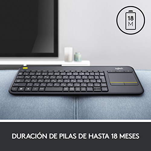 Logitech K400 Plus Tastiera Wireless Touch TV, Facili Controlli Multimediali e Touchpad Integrato, Layout Spagnolo QWERTY - Nero