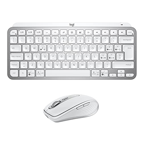 Logitech MX Keys Mini Tastiera + MX Anywhere 3 Mouse Wireless Combo - Tasti Retroilluminati, USB-C, Bluetooth, Compatto ed Ergonomico, Scroll Rapido, Compatibile Multi-OS, PC / Mac - Grigio chiaro