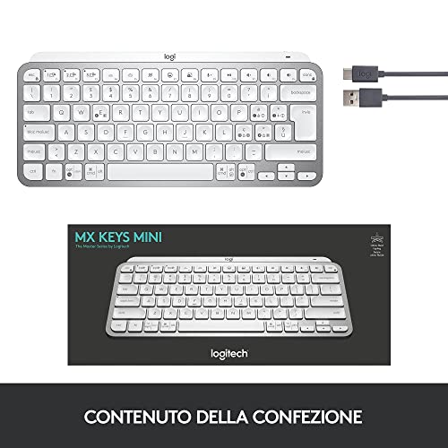 Logitech MX Keys Mini Tastiera Illuminata Wireless, Minimal, Compatta, Bluetooth, Retroilluminata, USB-C, Compatibile con Apple macOS, iOS, Windows, Linux, Android, in Metallo - Grigio chiaro
