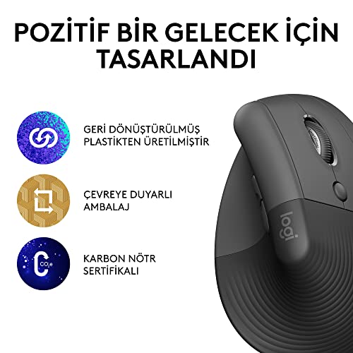 Logitech Lift Mouse Ergonomico Verticale, Senza Fili, Ricevitore Bluetooth o Logi Bolt USB, Clic Silenziosi, 4 Tasti, Compatibile con Windows / macOS / iPadOS, Laptop, PC - Grafite