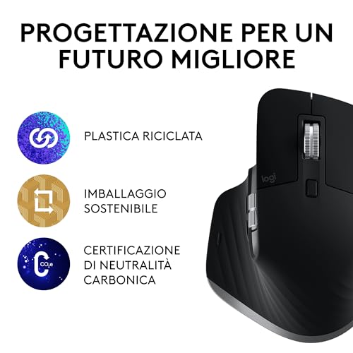 Le parti in plastica di MX Master 3S per Mac includono plastica riciclata post-consumer certificata (Space Gray: 27%, Pale Gray: 22%(9);