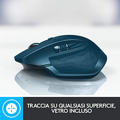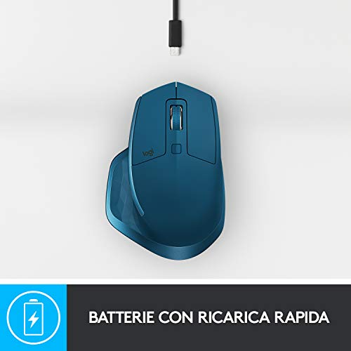Logitech MX Master 2S Mouse Wireless, Multidispositivo, Bluetooth o 2.4 GHz Wireless con Ricevitore USB Unifying, 4000 DPI su Ogni Superficie, 7 Pulsanti, Ricaricabile, PC/Mac/Laptop/iPadOS, Blu