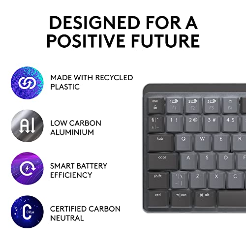 Logitech MX Mechanical Mini Tastiera Retroilluminata Wireless, Switch Tattili Silenziosi, Layout Inglese QWERTY - Grigio