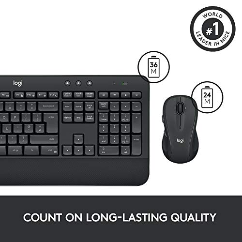 AFFIDABILE E SENZA PROBLEMI - La tastiera non necessiterà di nuove batterie per ben 36 mesi e il mouse resterà carico per 24 mesi.* La tastiera resiste fino a 60 ml di liquido e i tasti resistenti alle abrasioni garantiscono una massima durata della stampa.*La durata delle batterie varia a seconda dell'uso.