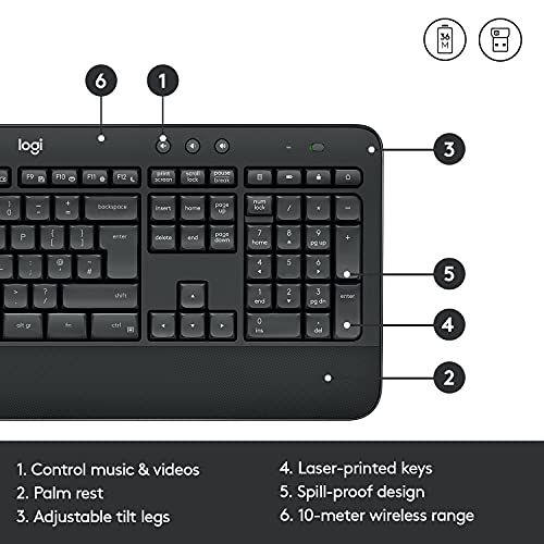 Logitech MK545 Advanced Kit Mouse e Tastiera, Layout Americano QWERTY, Nero