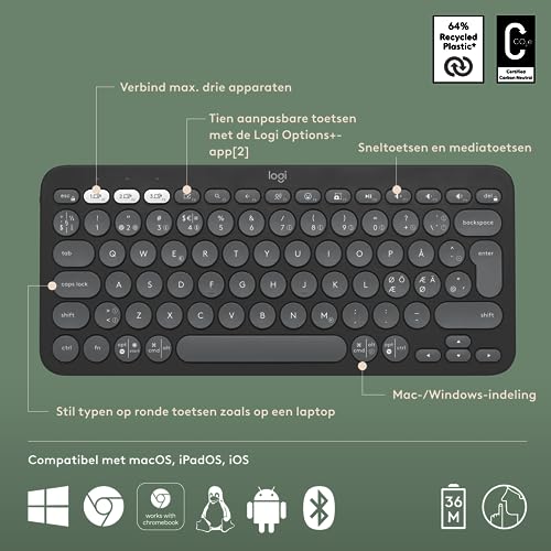 Logitech Pebble Keys 2 K380s - QWERTY US International Layout, Graphite