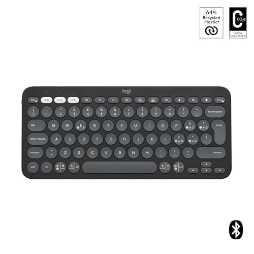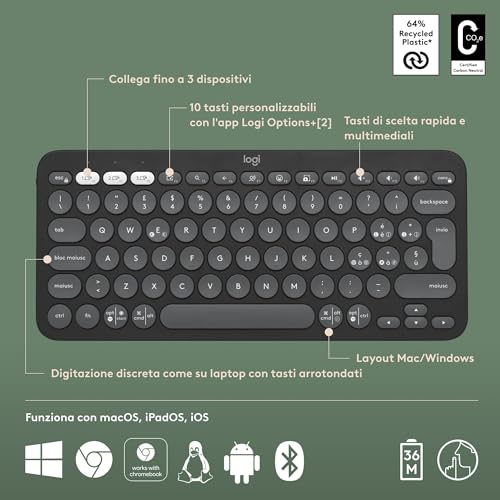 Logitech Pebble Keys 2 K380s, Tastiera Bluetooth Multidispositivo con Tasti di Scelta Rapida Personalizzabili, Sottile e Portatile, Easy-Switch per Windows, macOS, iPadOS, Android, ITA QWERTY, Grafite
