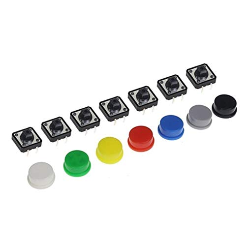 NO LOGO W-NUANJUN-Tool, 10/20 / 100set tattile di Pulsante Interruttore momentaneo 12 * 12 * 7.3mm Micro Switch Pulsante + 5 Colori Tatto cap for DIY Kit (Colore: 10Set)