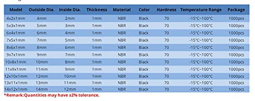 NO LOGO ZZB-LSTH, 1000pcs 1mm di Spessore Nero Gomma Nitrile O Ring Guarnizioni 4/5/6/7/8/9/10/11/12/13/14 OD NBR Anelli Guarnizione di Tenuta Rondella (Size: 4x2x1mm)