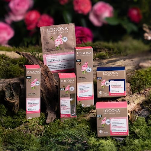 LOGONA - Maschera idratante naturale tonificante, per un'idratazione intensa, con estratto di rosa biologica e collagene, cura nutriente vegana, 2 x 4 ml