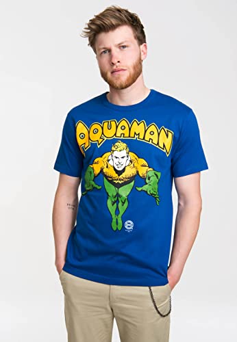 Logoshirt T-Shirt Aquaman - Maglia DC Comics - Il Supereroe - Maglietta Girocollo Azzurro - Design Originale Concesso su Licenza, Taglia M