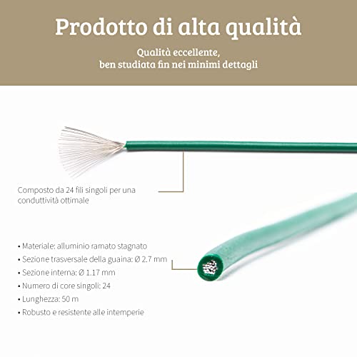 Resistente alle intemperie: il nostro filo è resistente a qualsiasi condizione atmosferica, come ad esempio: pioggia, gelo o anche l'esposizione al sole. Ciò garantisce la massima durata del cavo stesso.
