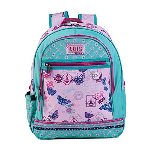 Lois - Zaino infantile imbottita in poliestere con maniglia superiore e cinghie regolabili. Doppia tasca centrale. Tasca frontale. Ideale per scuola o viaggi 54102, Color Rosa