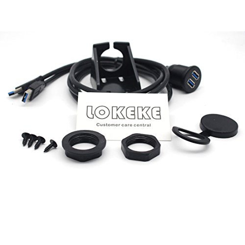 Lokeke Dual USB 3.0 maschio A femmina cavo di estensione Stocket montaggio a filo con Mountig pannello per auto, barche e moto, lunghezza 1 meter