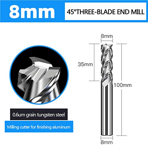 LOKIH End Mill Carbide End Mill Coated, 3 Flutes,Acciaio al Tungsteno per Finitura Prodotti in Alluminio Integrale: 100Mm, 1 Pz,Diameter:8mm