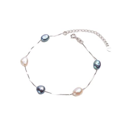 LOKILOKI Braccialetto di Perle Barocche Naturali in Argento Sterling 925 Genuino Moda 6-7mm Gioielli di Perle d'Acqua Dolce per Le Donne