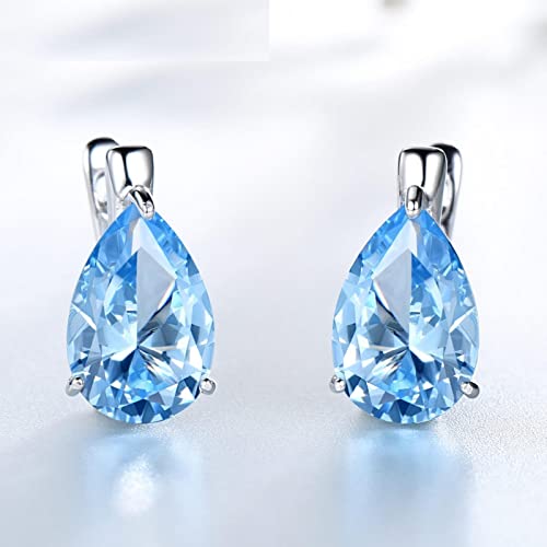 LOKILOKI Gioielli in Argento Sterling Genuino 100% 925 Pera Creati Orecchini A Clip con Topazio Azzurro Cielo per Le Donne Regalo di Anniversario Gioielleria Raffinata