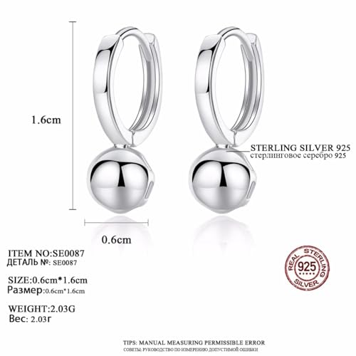 LOKILOKI Orecchini A Cerchio con Sfera in Argento 925 Rotondi Orecchini A Sfera Vintage in Vero Argento Sterling 925 per Regalo di Gioielli alla Moda da Donna