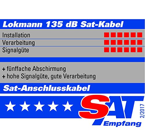 Lokmann, cavo coassiale schermato a 5 strati, lunghezza 50 m, in puro rame, 135 dB, cavo satellitare, antenna TV, Full HD, UHD, 4K, 8K e superiori, incluse 10 spine a F, colore: nero