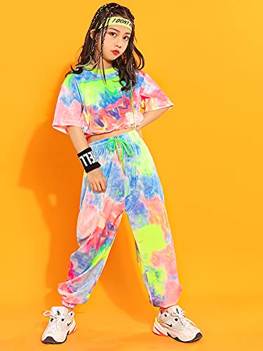 LOLANTA Pantaloni Felpa Tie-Dye per Ragazze,Costume da Ballo di Strada, Set di Abbigliamento per Bambini in Velluto(10-11 Anni,Corto,Dimensione del Tag 150)