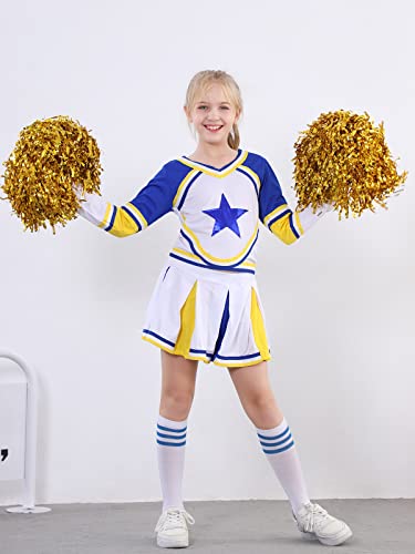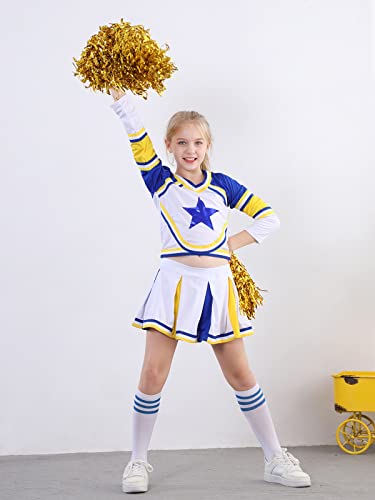 LOLANTA Ragazze Costume da Cheerleader Vestiti di Carnevale Kids Cheer Outfit con Calzini Pom Pom Blue Star