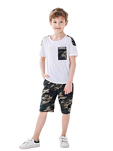 LOLANTA T-Shirt Maniche Corte da Ragazzo + Pantaloni Corti Mimetici, Set di Abbigliamento 2 Pezzi per Bambini, Nero, 160