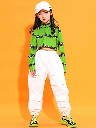 LOLANTA Vestiti da Ballo Hip-Hop per Ragazze, Completo da Ballo di Strada, Set di Abbigliamento per Pantaloni Cargo(11-12 Anni,Bianco,Dimensione del Tag 160)