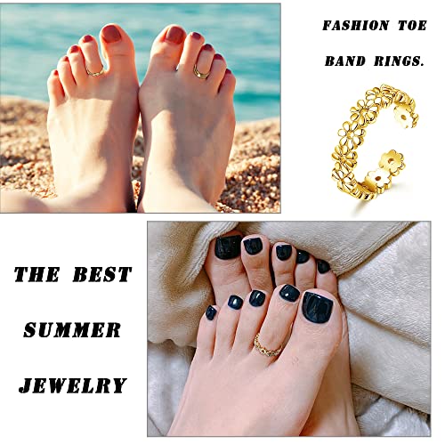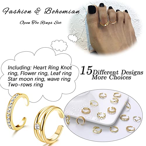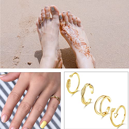 LOLIAS 15PCS Anello Piede Regolabile per Donna 14K Placcato Oro Carino Open Toe Anello Set Fiore Freccia Cuore Coda Mignolo Band Set Anelli di Estate dei Monili della Spiaggia