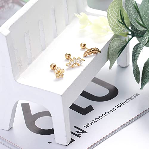 Materiale di qualità Tutti questi gioielli per piercing alla cartilagine realizzati in acciaio chirurgico 316L, robusti e durevoli, privi di piombo e nichel, sicuri per la tua pelle sensibile. Con CZ ripetuto e di qualità, gli orecchini da piercing possono rimanere luminosi a lungo e non si arrugginiscono facilmente. Comodo per il tuo abbigliamento quotidiano.