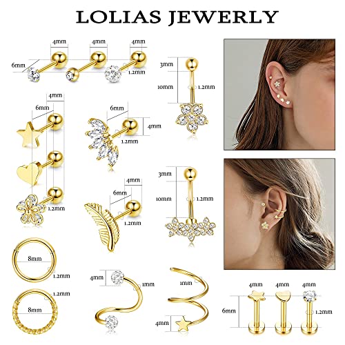 LOLIAS 17Pcs 16G Orecchini a Cerchio per Cartilagine per Donna Uomo Acciaio Inossidabile CZ Labret Helix Piercing Trago Orecchini con perno Forward Conch Piercing Jewelry Set