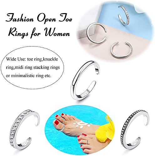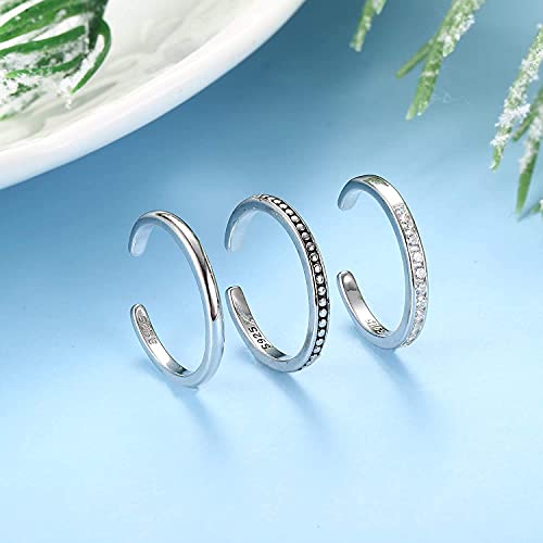 LOLIAS Set di Anelli Aperti Argento Sterling 925 Open Toe Ring per Donna Ragazze Anelli CZ Aperti Regolabili Ipoallergenici Anelli con Coda Anello Piede Spiaggia Gioielli