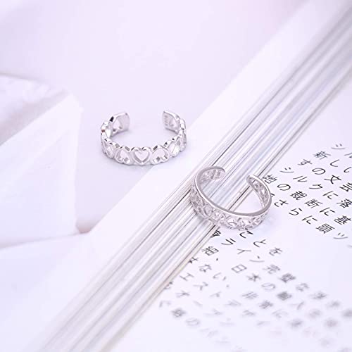 SET DI ANELLO PIEDE --Con un ordine otterrai due stili di anelli per le dita.Questi anelli per le dita in argento sterling di design alla moda hanno uno spazio nella parte posteriore in modo che possa essere regolato per adattarsi bene alla tua punta. Con un design a cuore vuoto, ti renderanno affascinante e alla moda in occasione di feste, balli, matrimoni e altre occasioni.