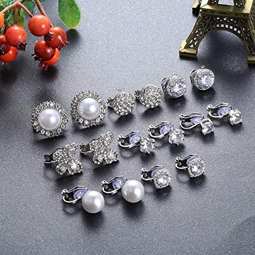 ★ SET DI ORECCHINI CON CLIP ON ★ Puoi ottenere 8 paia di orecchini a clip da donna in un ordine. inclusi orecchini di perle finte, orecchini a farfalla, orecchini aureola con zirconi cubici. I bellissimi orecchini non forati sono adatti per ogni donna.
