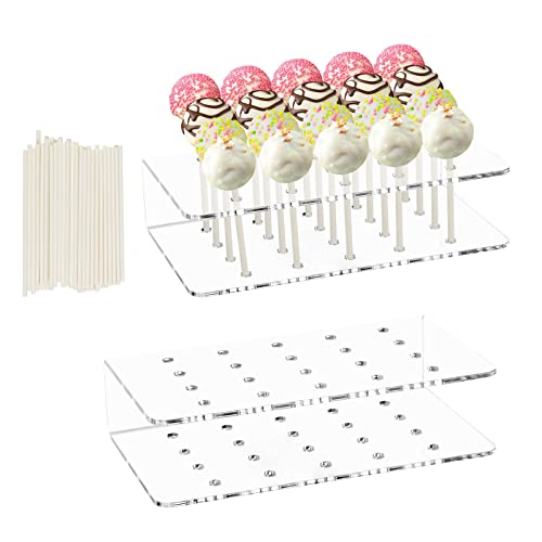 [Espositore per Lecca-Lecca]: Il porta-lecca-lecca per torta in acrilico trasparente adotta un design a 20 fori a doppio strato, che è comodo per riporre i lecca-lecca e mostra chiaramente i tuoi lecca-lecca.Puoi posizionare facilmente e in modo sicuro i lecca-lecca su di esso. La superficie del supporto per torta è liscia, quindi è sufficiente pulire il supporto con un panno umido.
