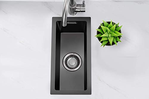 LOMAZOO Lavello nero in acciaio inox 24 cm, nero lavello da cucina, lavello da incasso, lavabo da cucina (18 x 40 cm)