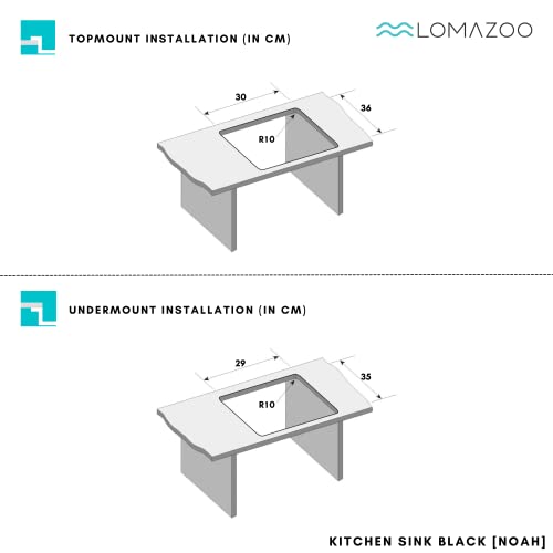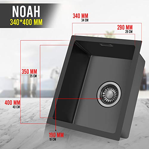 LOMAZOO Lavello nero in acciaio inox 34 cm, nero lavello da cucina (34 x 40 cm, nero)