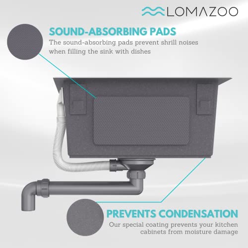Design silenzioso: questo lavello è dotato di cuscinetti che riducono il rumore per eliminare il fastidioso suono cavo. I cuscinetti rivestono il rivestimento e rendono il nostro lavello Lomazoo ideale per ambienti freddi.