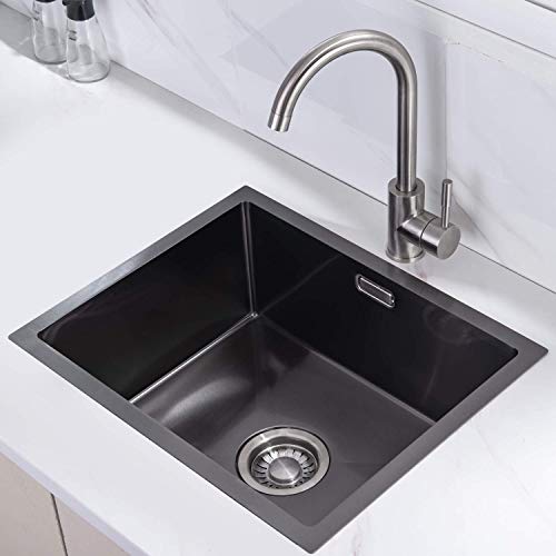 LOMAZOO Lavello nero, lavello da cucina in acciaio inox, nero lavello da incasso, lavabo da cucina (40 x 40 x 20, nero)
